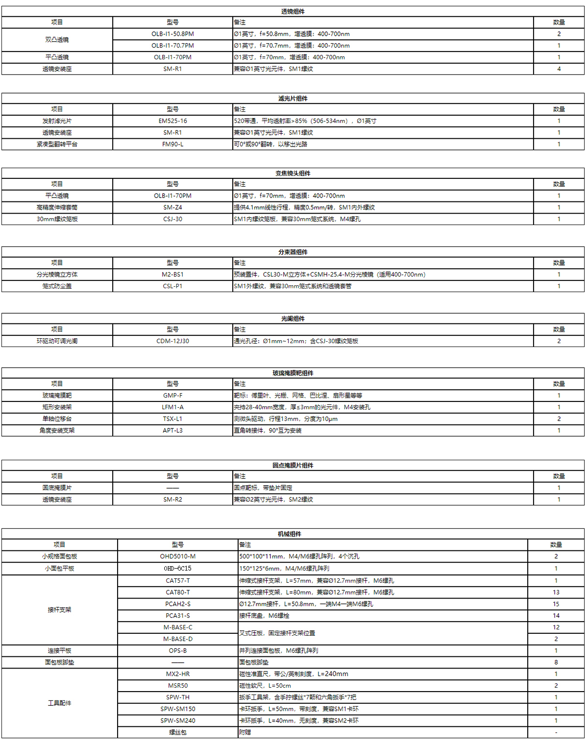 套件清单 |