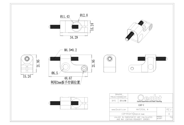 • 使用2mm六角扳手精细调节定位;