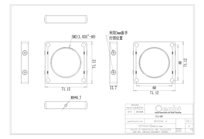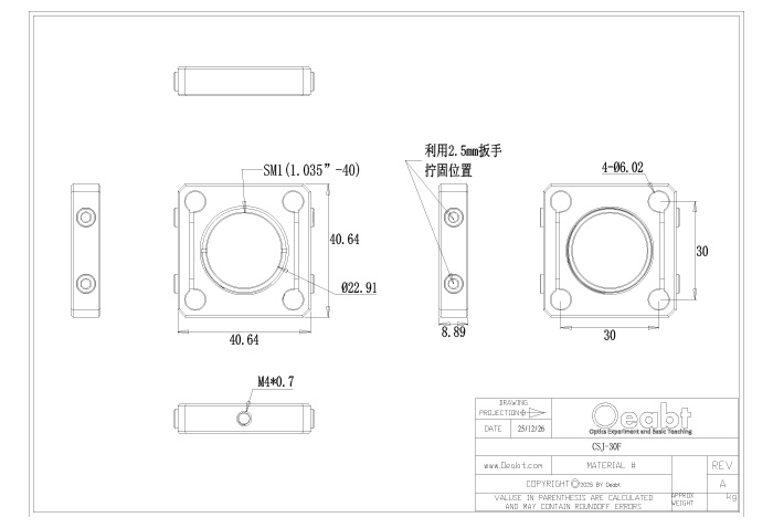 • 螺纹笼板,将光学元件安装到笼式系统中;