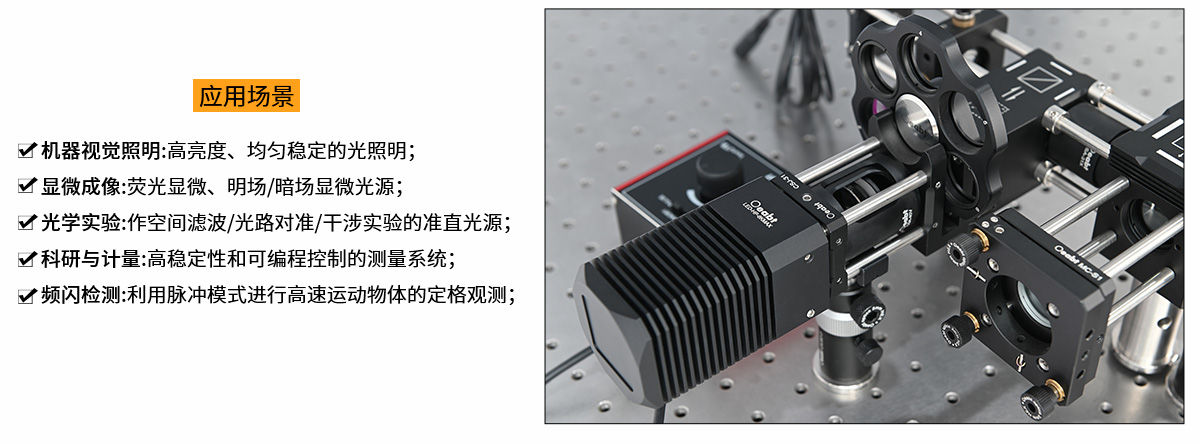 大功率光源与控制器的分体式设计,集高亮度输出、热稳定性和灵活驱动模式于一体。可直接耦合到显微落射照明光路中。