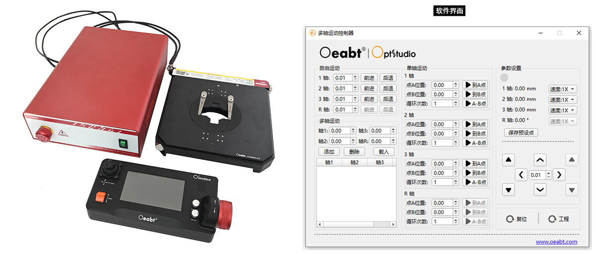O’motion 四轴运动控制系统(OM-4X控制驱动器和OM-4CP操作手柄)、OSMC-1U单轴步进控制器*2 |
