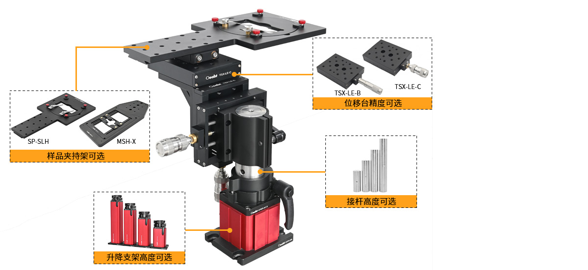 载物台式采用预组装形式交付,用户可根据实验需求选择不同高度范围和精度等级的型号。