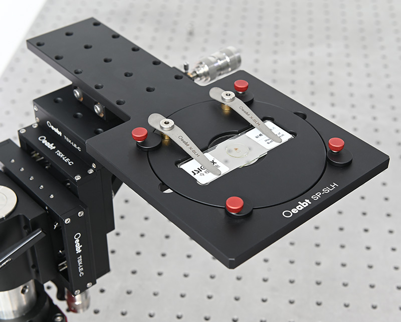 • 样品架选项:SP-SLH:26.0*76.2mm标准载玻片,Ø35mm的培养皿; MSH-X + SHX-A:载玻片宽度25~26.5mm之间,和Ø30~60mm的培养皿以及额外的X轴移动 ;