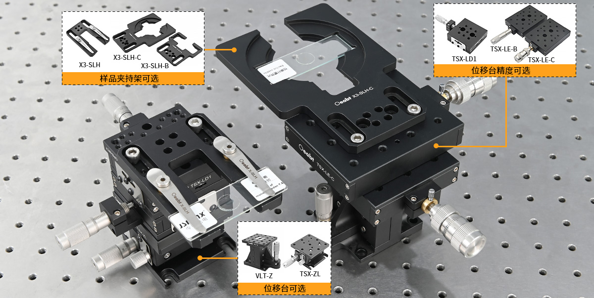 • 样品架选项: X3-SLH:兼容长度≥44mm载玻片和Ø37.1~41.4mm培养皿;