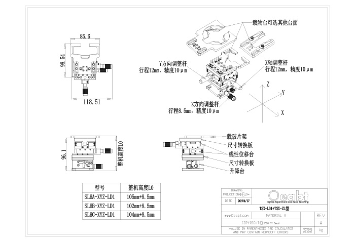 TSX-LD1型(XY轴系12mm)+TSX-ZL型(Z轴系8.5mm) |
