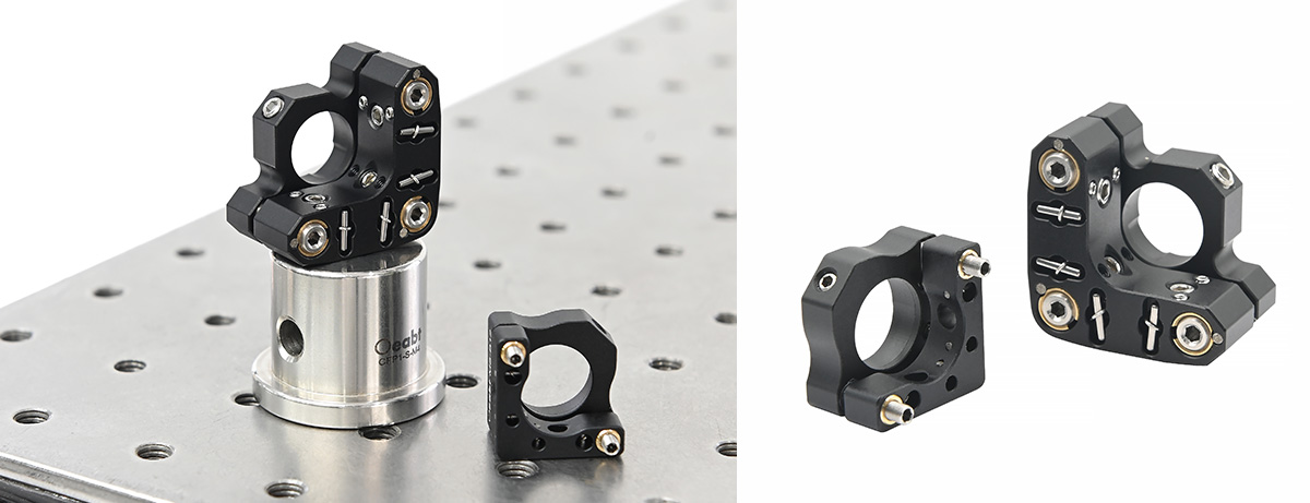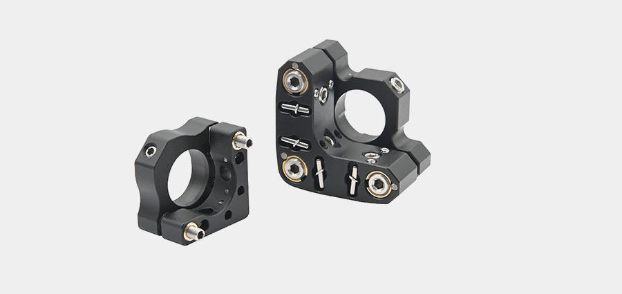 调整架提供±4°的俯仰和偏转调节,用于Ø1/2英寸光学元件,通过尼龙顶丝固定元件。