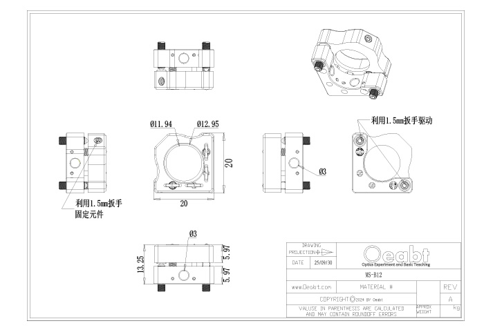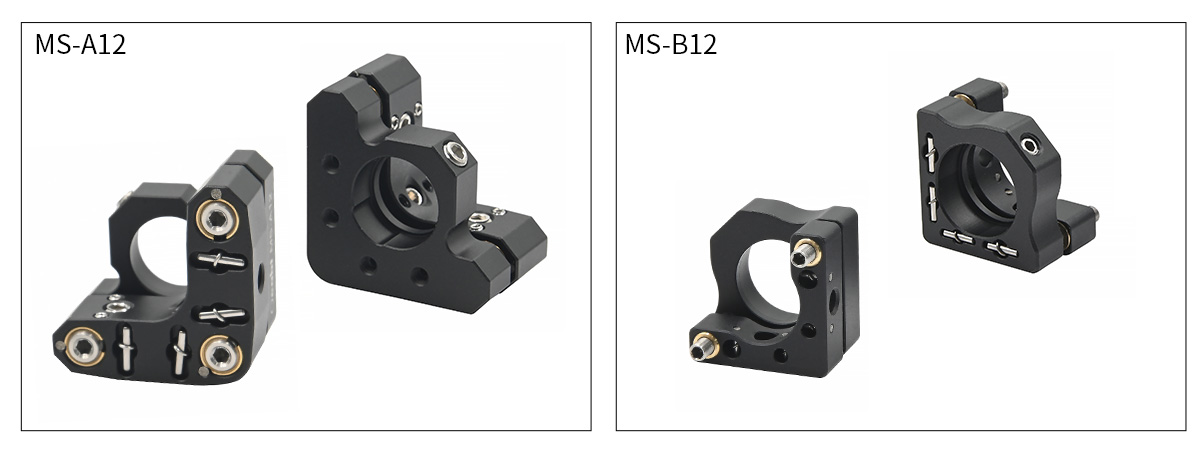 • MS-B12:两个M2.5*0.2调节器,每圈13.96mrad/rev(0.8°)调节;