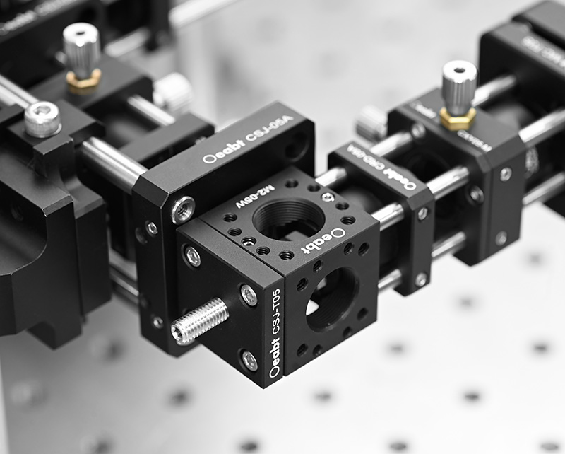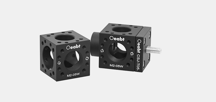 (3)CSJ-T05立方体压块可直接安装至16mm立方体上,搭配棱镜安装座使用。通常安装在带通孔的两面。压块机制是一个带±5°旋转头的调节螺丝,根据安装的光学元件高度,旋扭调节螺丝至安装元件上方压持固定。