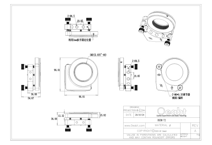 RKBM-T2用来夹持Ø2英寸(厚度≤12.0mm)的光学元件,用附带的SM卡环固定元件位置。