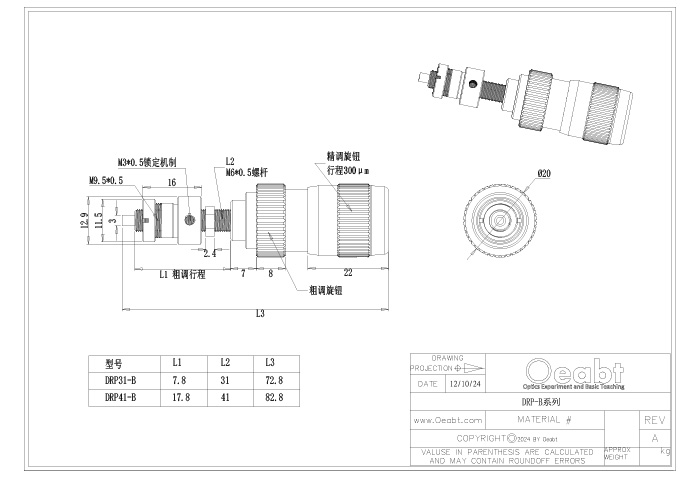 DRP系列调节器提供了高分辨率和重复率。杠杆机制放大了高精度精细调节螺纹的分辨率,使轴向位移小。