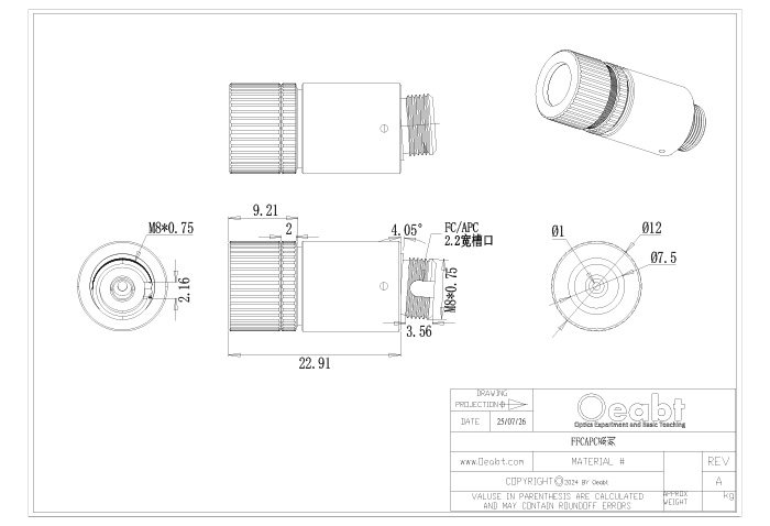 (2)对于光纤对光纤的耦合,推荐使用FB系列光纤U型台定位耦合。搭配POL-12固定安装孔或OAD-12准直安装孔,兼容该系列的光纤准直器,且带SM1(1.035”-40)外螺纹,可以直接集成到U型台或光学镜架、笼式系统。