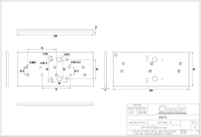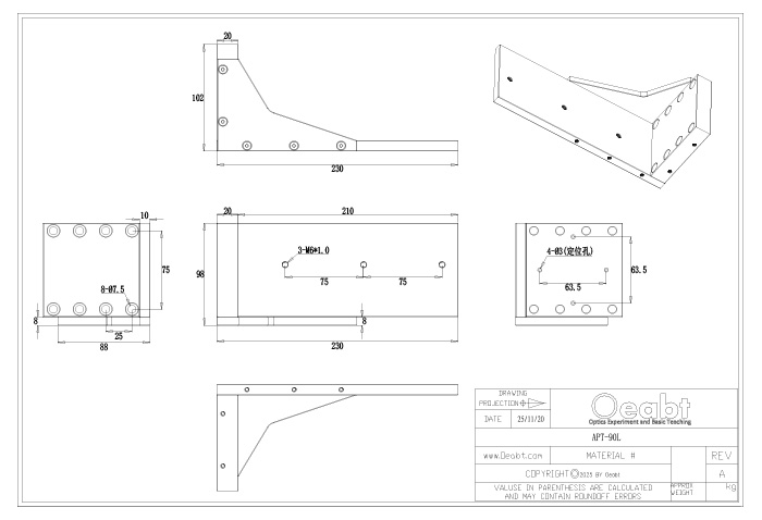 底板:M6*8处(沉头孔);侧板:M6*3处、Ø3mm*2处(定位孔)