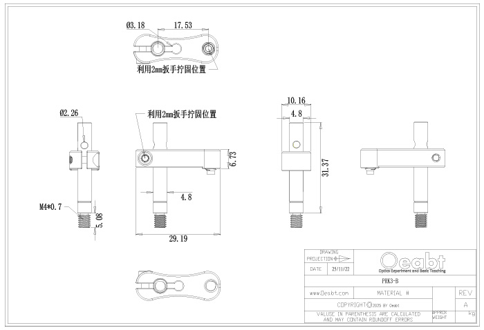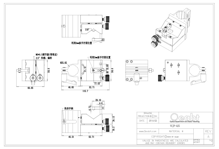 • 精调款,带M6*0.5调节器,提供±2°仰俯和偏转调节,可锁定;