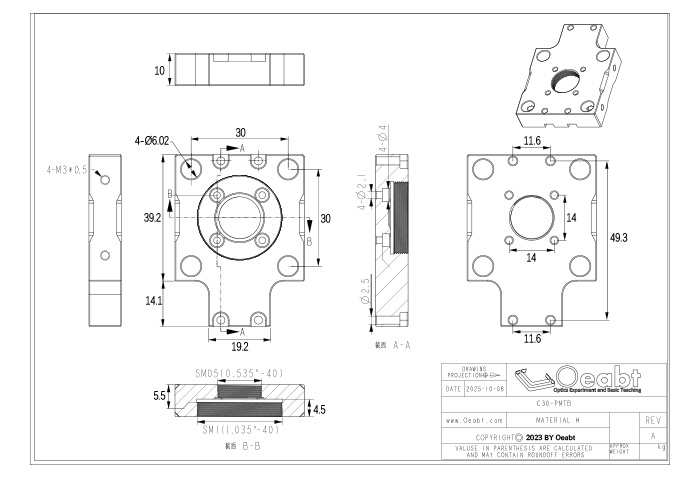 • 沉头孔用于PMT的连接,附带4颗M2柱头螺丝安装;