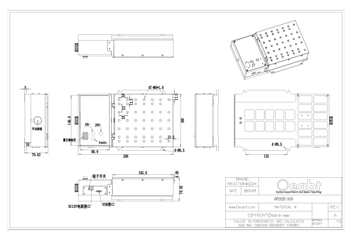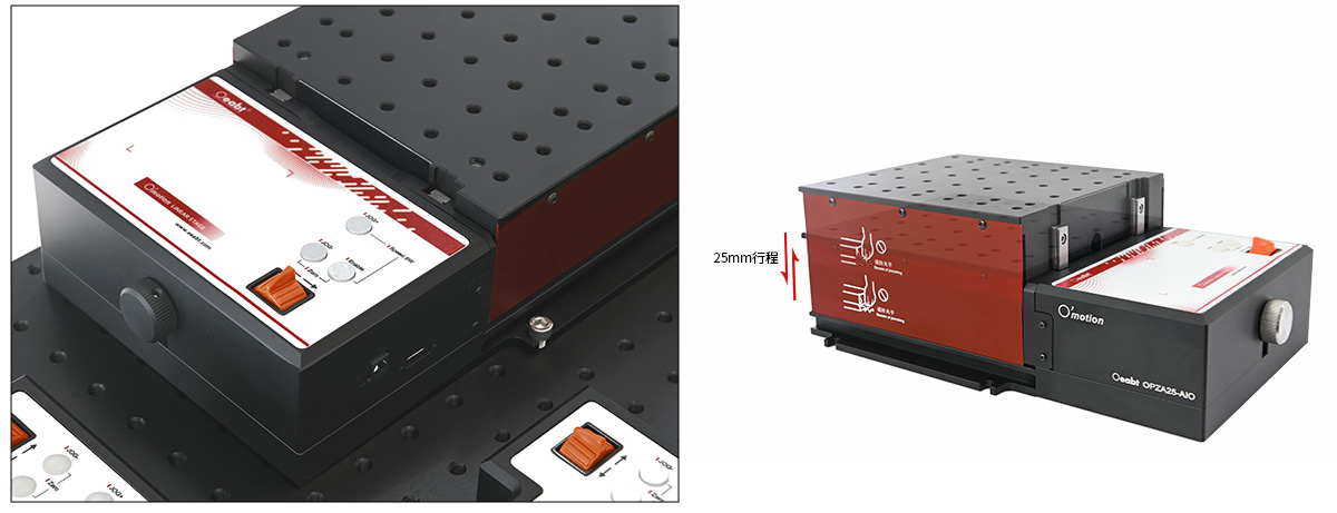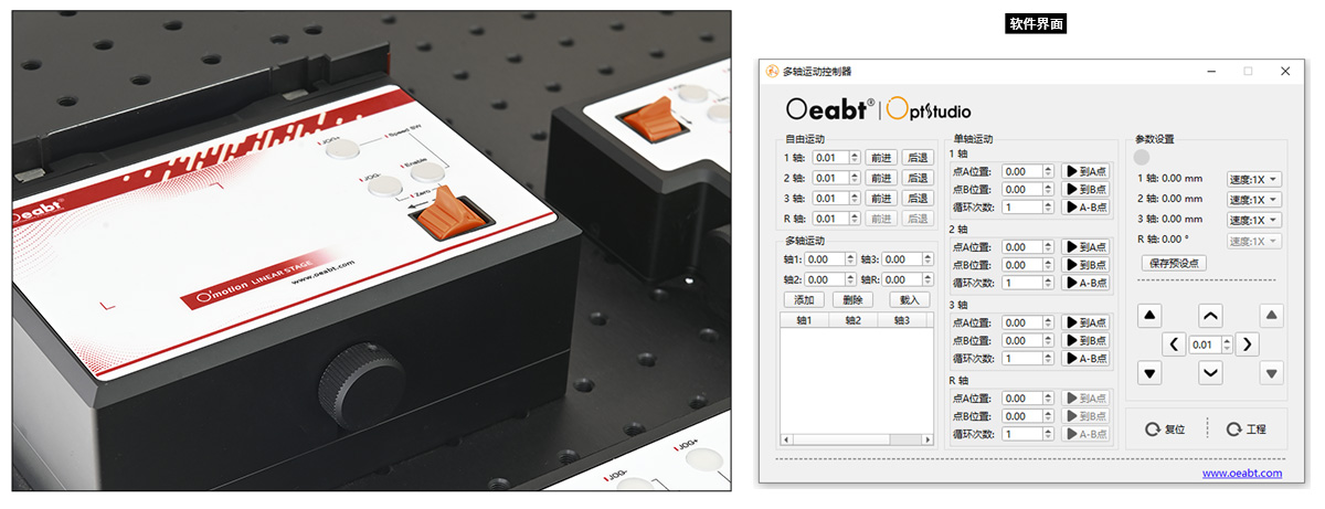 注*:最高、最低运动速度及点动距取决于运动控制器的脉冲频率及设定,因此上述*号标注参数,均为采用Oeabt® O’motion 四轴运动控制系统下的测试结果。