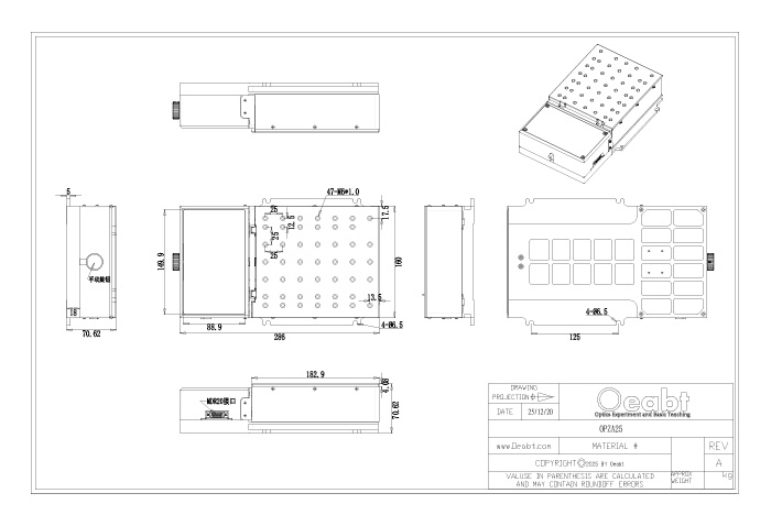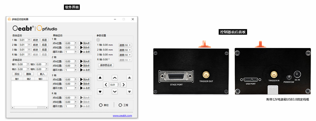 注*:最高、最低运动速度及点动距取决于运动控制器的脉冲频率及设定,因此上述*号标注参数,均为采用Oeabt® O’motion 四轴运动控制系统下的测试结果。 |
